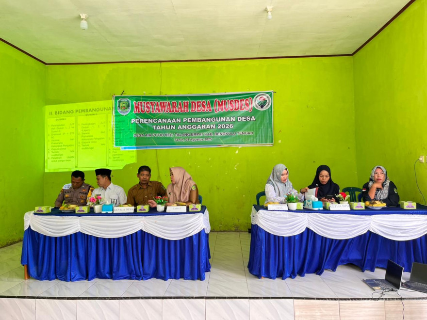 Air Putih, 10 November 2025 — Pemerintah Desa Air Putih Kecamatan Talang Empat Kabupaten Bengkulu Tengah menuntaskan Musyawarah Desa...